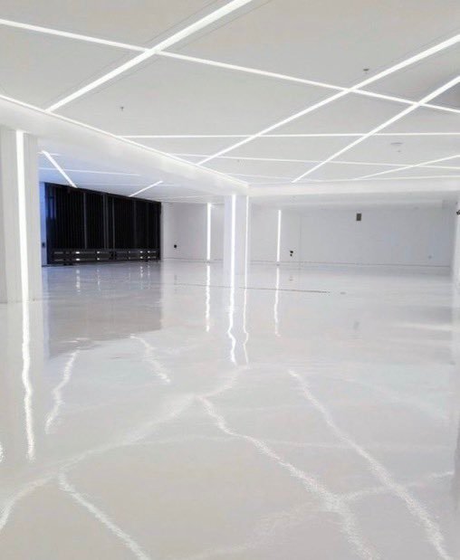 دهانات الإيبوكسي للأرضيات: توفر صلابة عالية ولمعانًا واضحًا، كما أنها تتحمل الحركة الثقيلة، وبالتالي تعد مناسبة للمواقف والممرات والمستودعات.